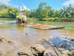 Karena tadi kami membawa hasil pertanian jagung yang sudah siap jual, pada saat menyebrang dengan menggunakan rakit yang terbuat dari bambu ini, semuanya terendam dan jagung kami basa semua, Jelas Midi