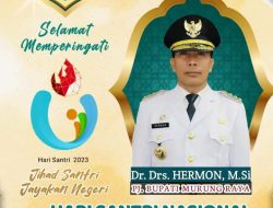 Murung raya, indonesiadetik.com- yang jatuh pada hari minggu tanggal 22 Oktober 2023. “Dr Drs HERMON, M.si, Menurutnya, berbagai cara bisa dilakukan untuk memeriahkan hari santri nasional 2023 salah satunya dengan memasang foto terbaik di twibbon, hari santri Nasional,