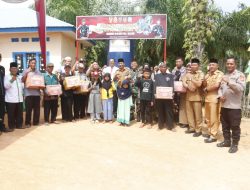 Dalam Kesempatan tersebut juga diserahkan bantuan paket sembako kepada masyarakat desa setempat. (Apit)